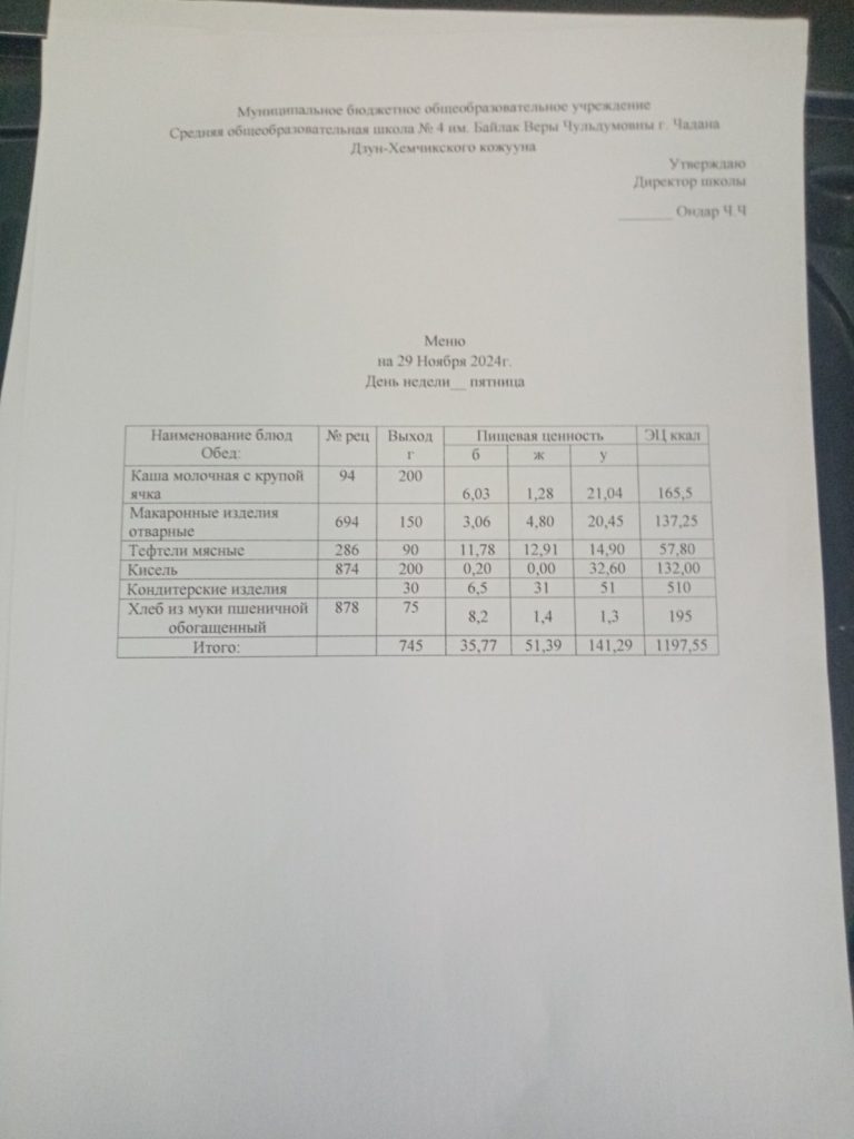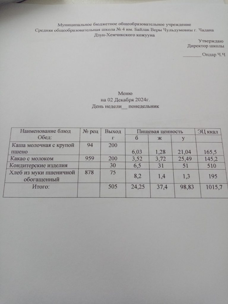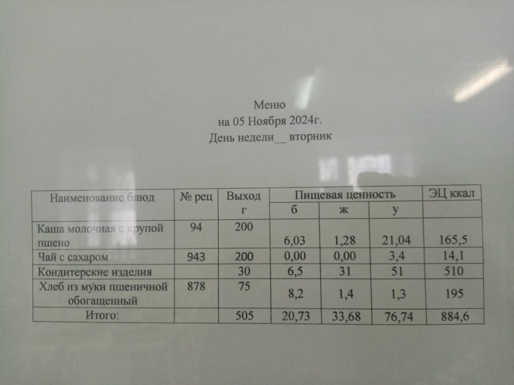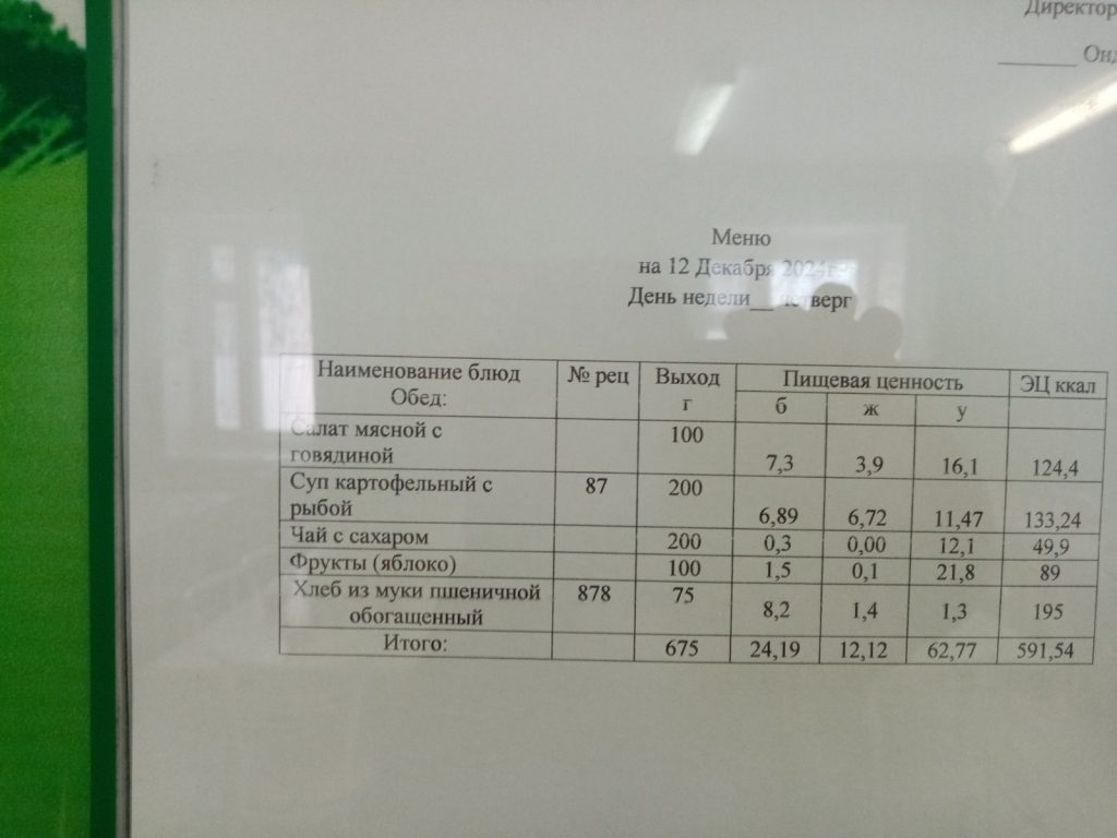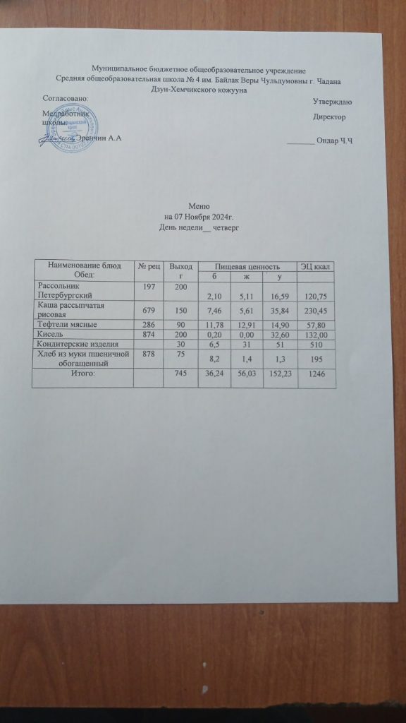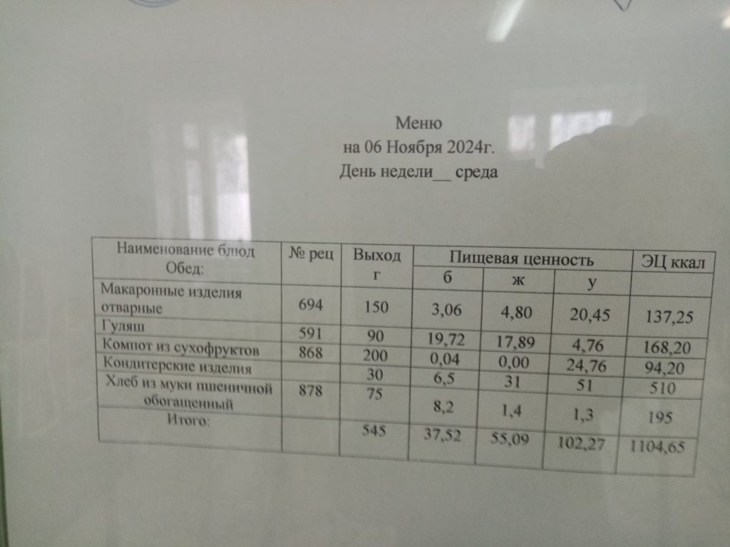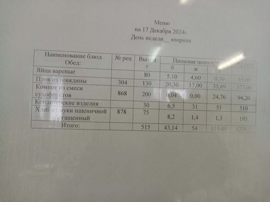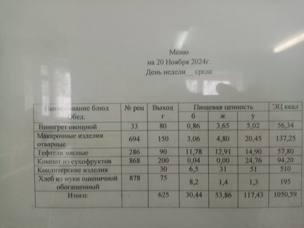 Утвержденное ежедневное меню