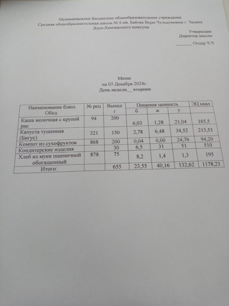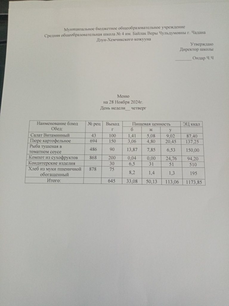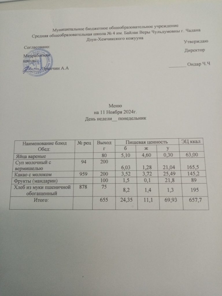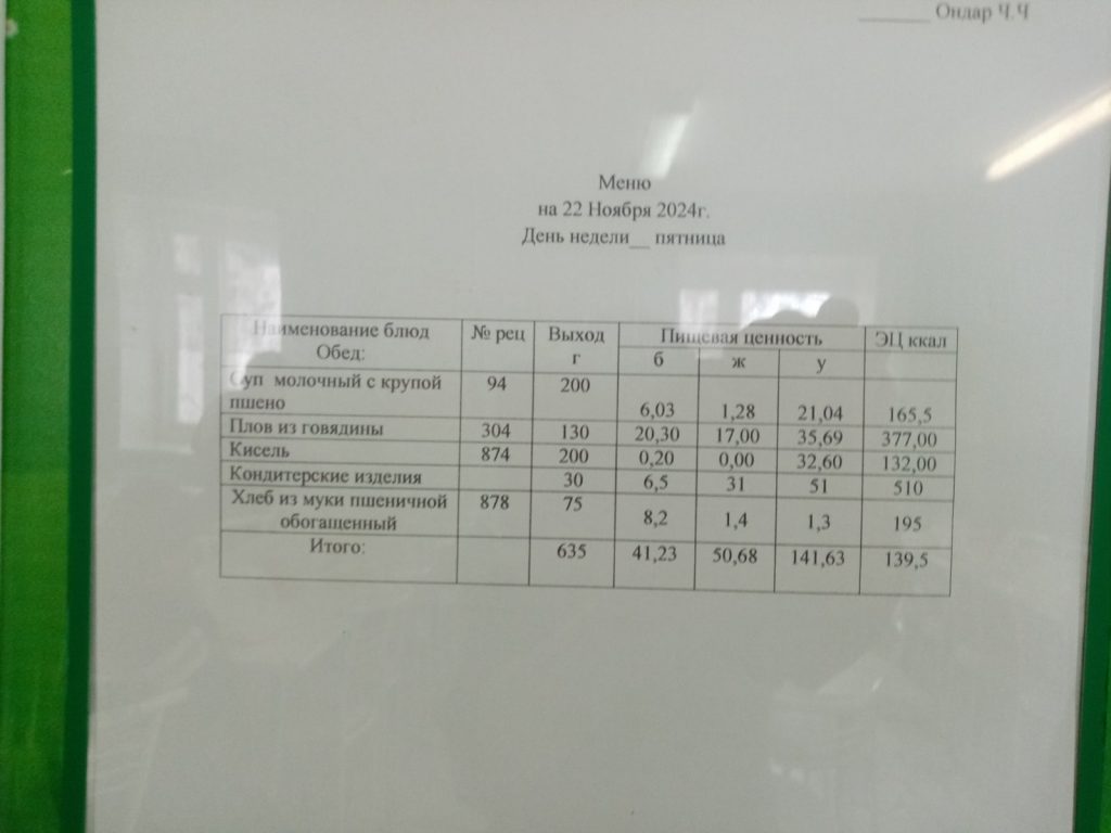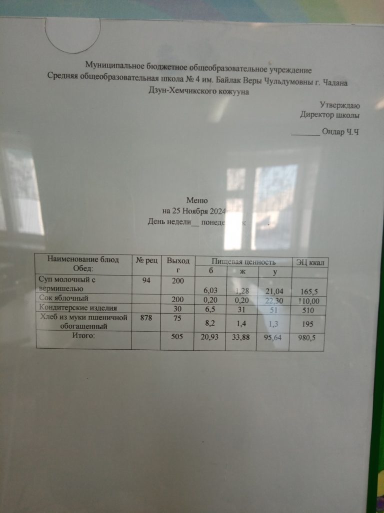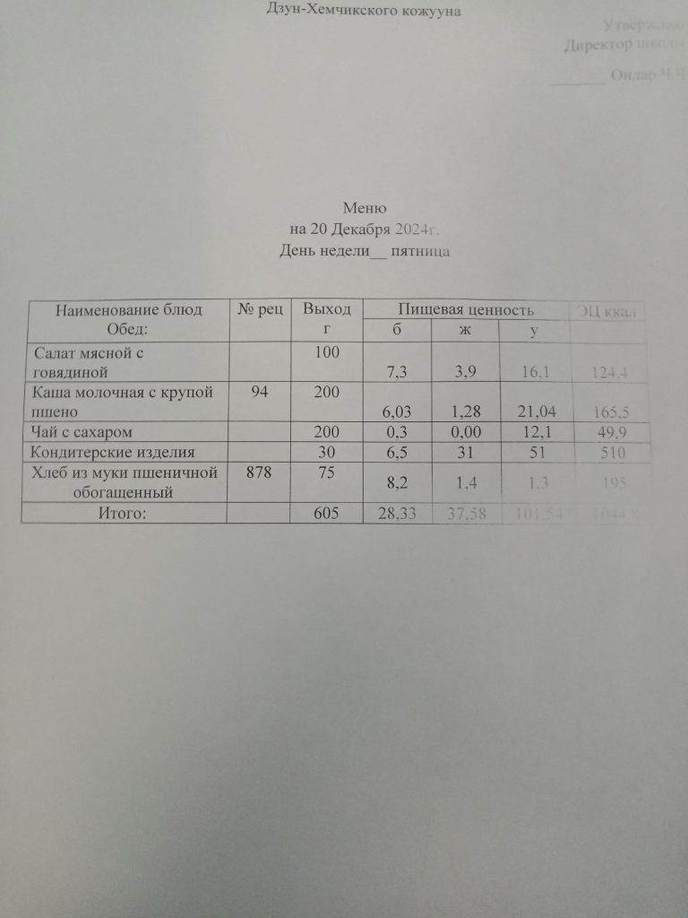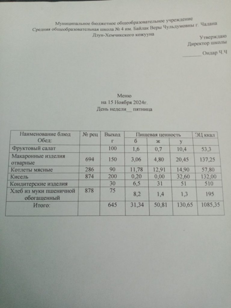 Утвержденное ежедневное меню
