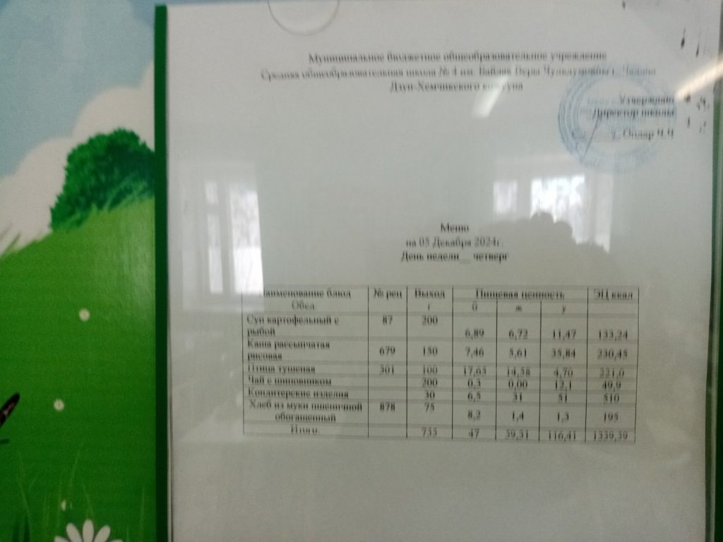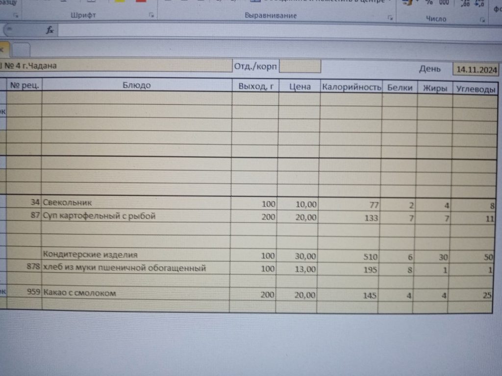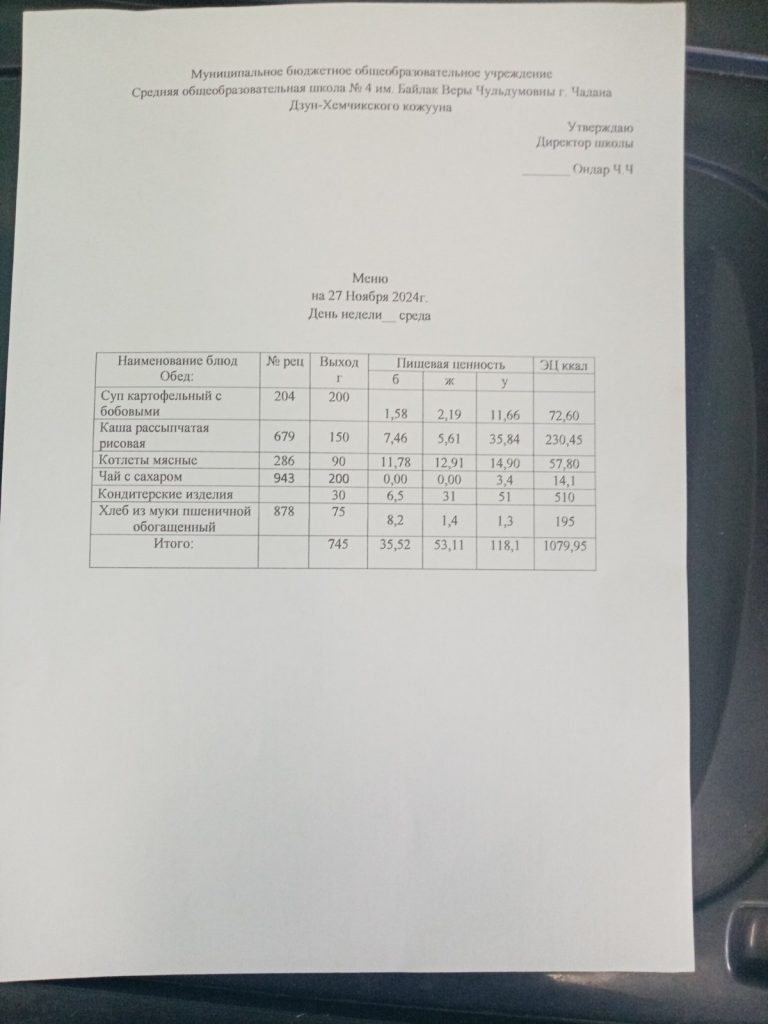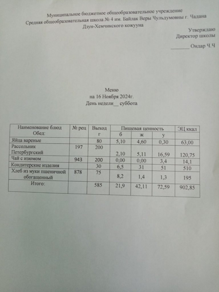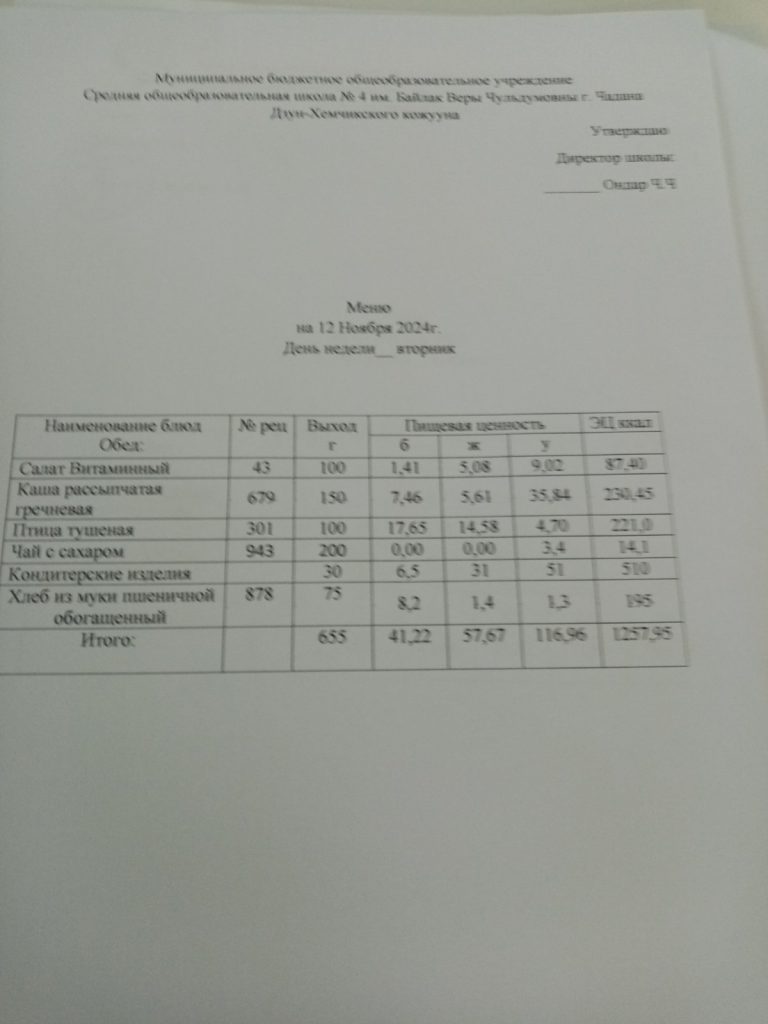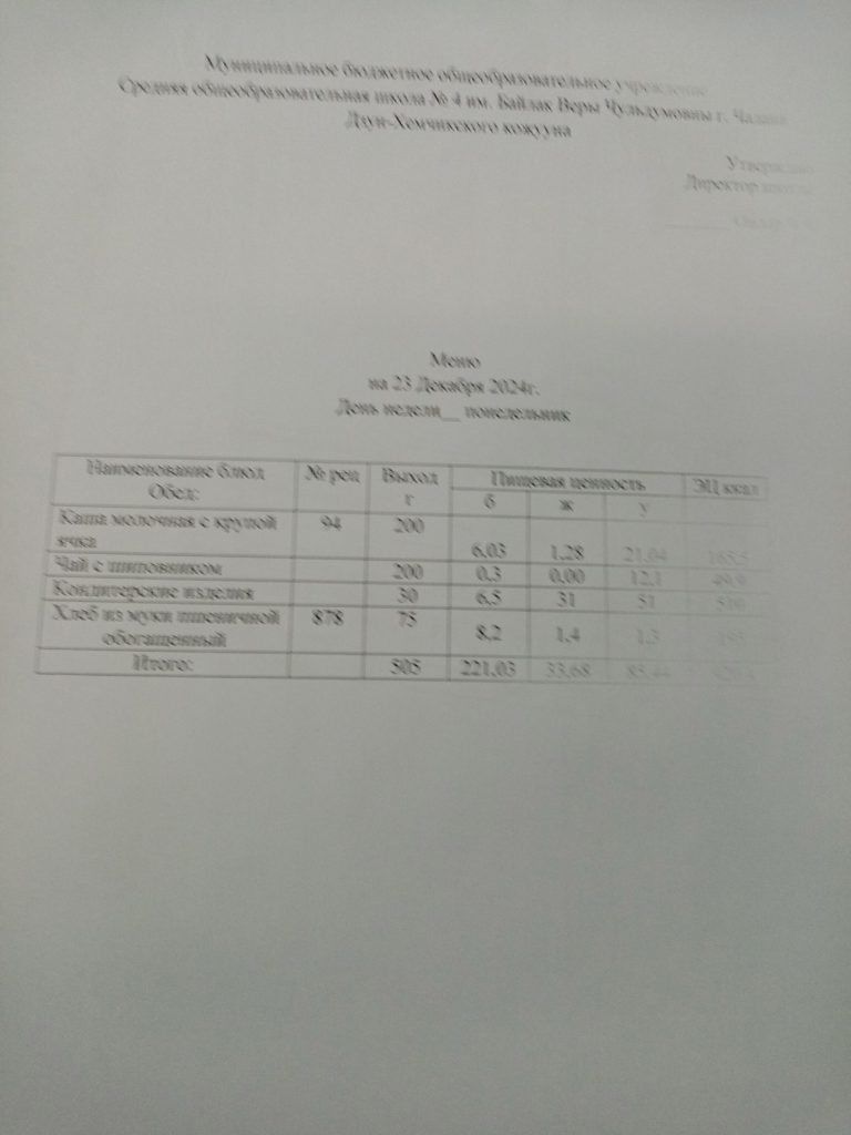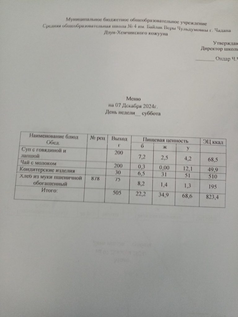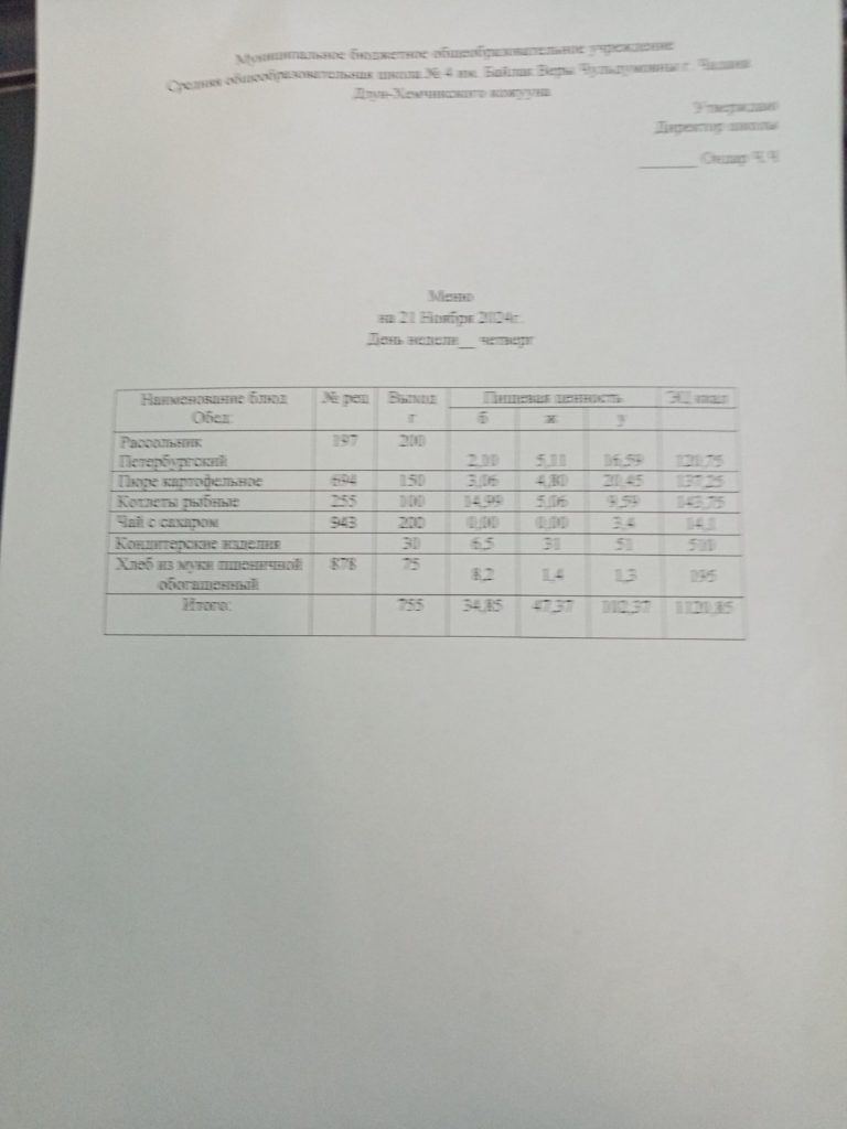 Утвержденное ежедневное меню