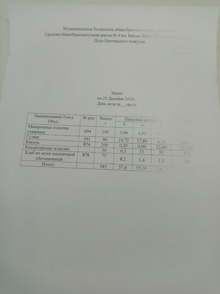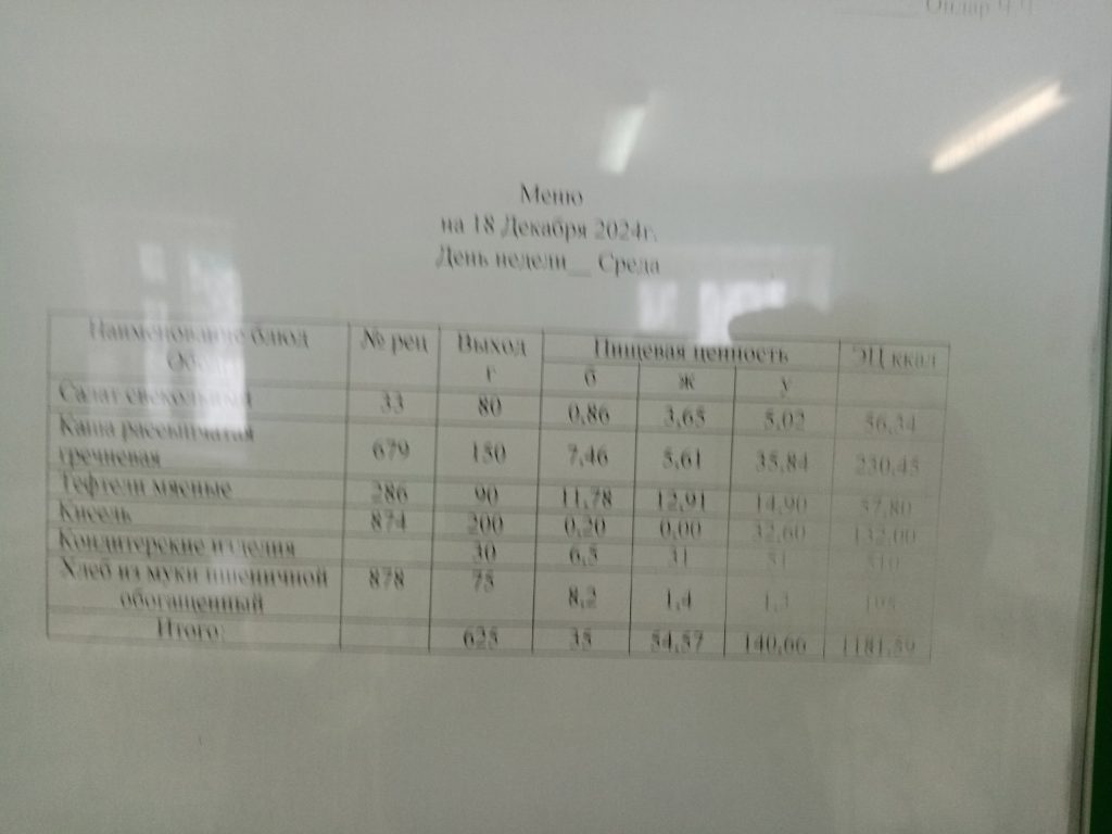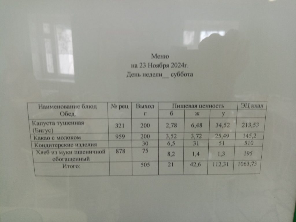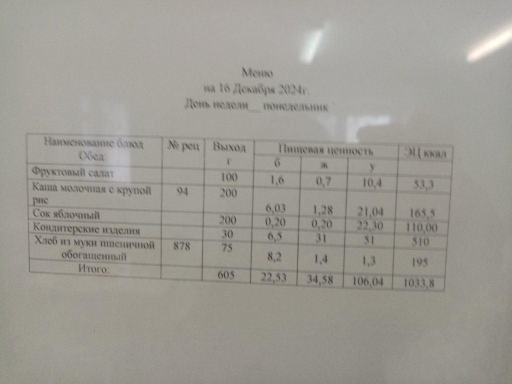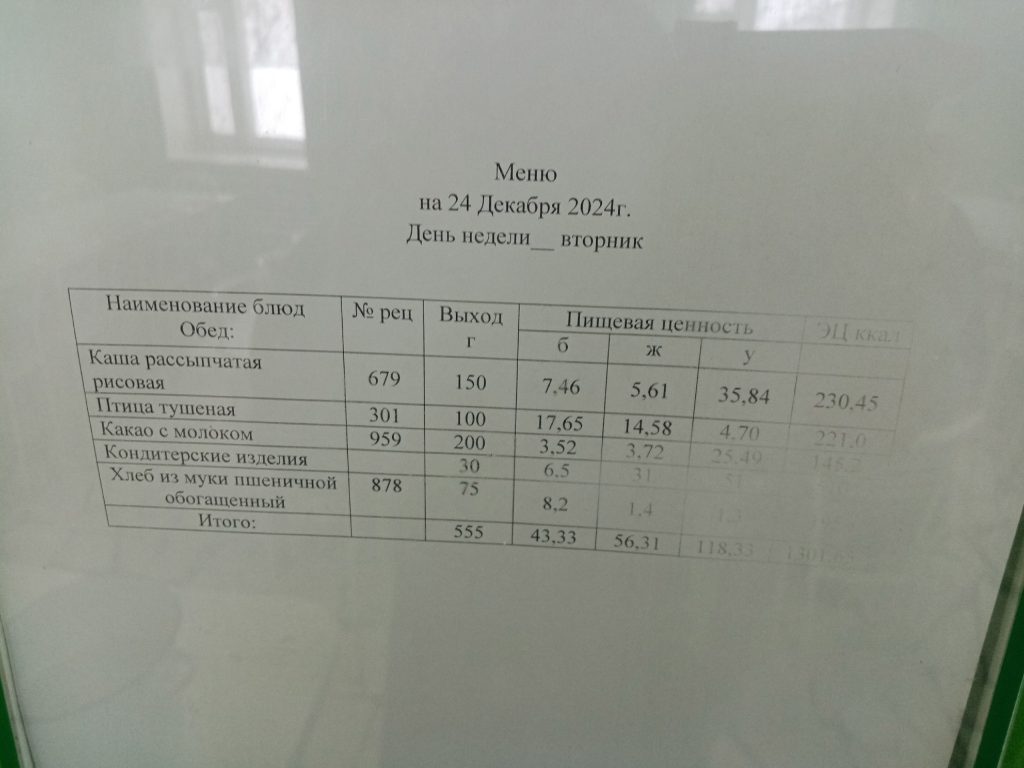 Меню. 2 четверть 2024-2025 у.г.