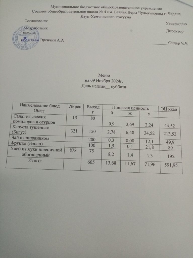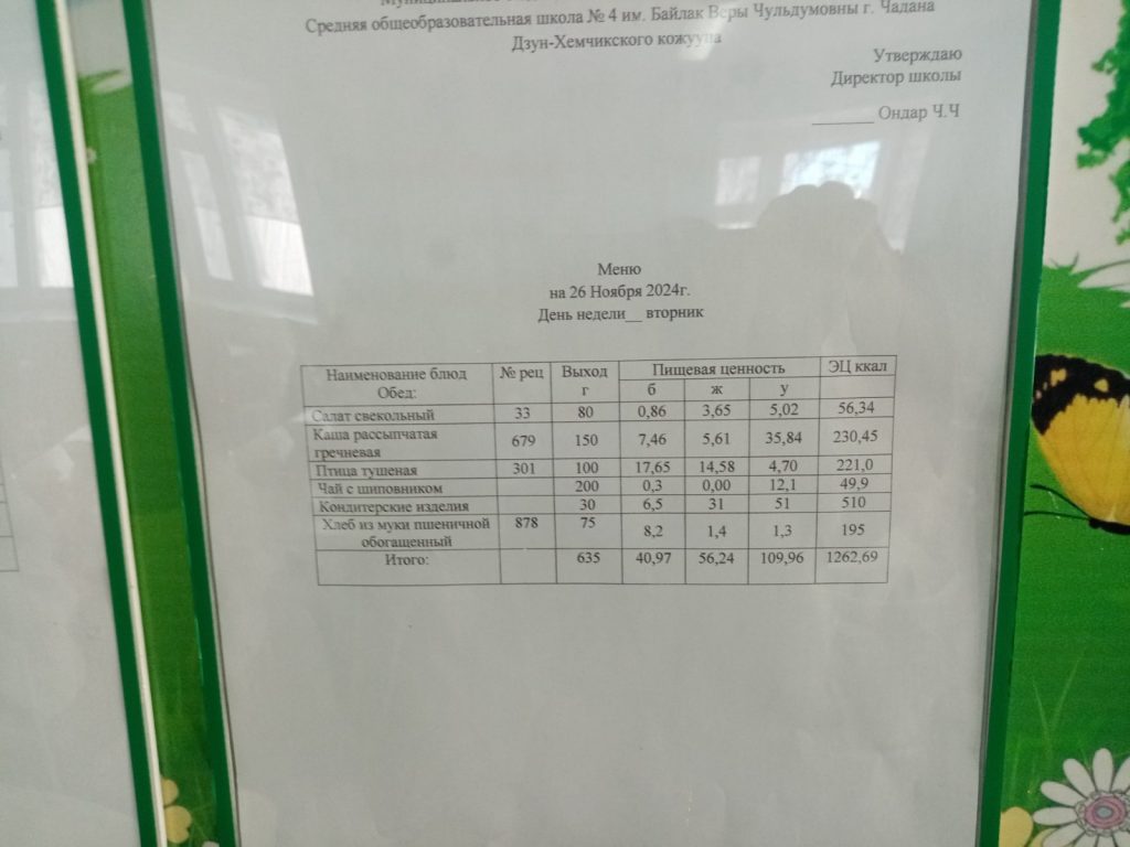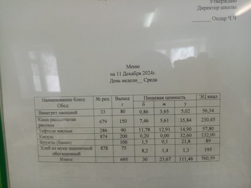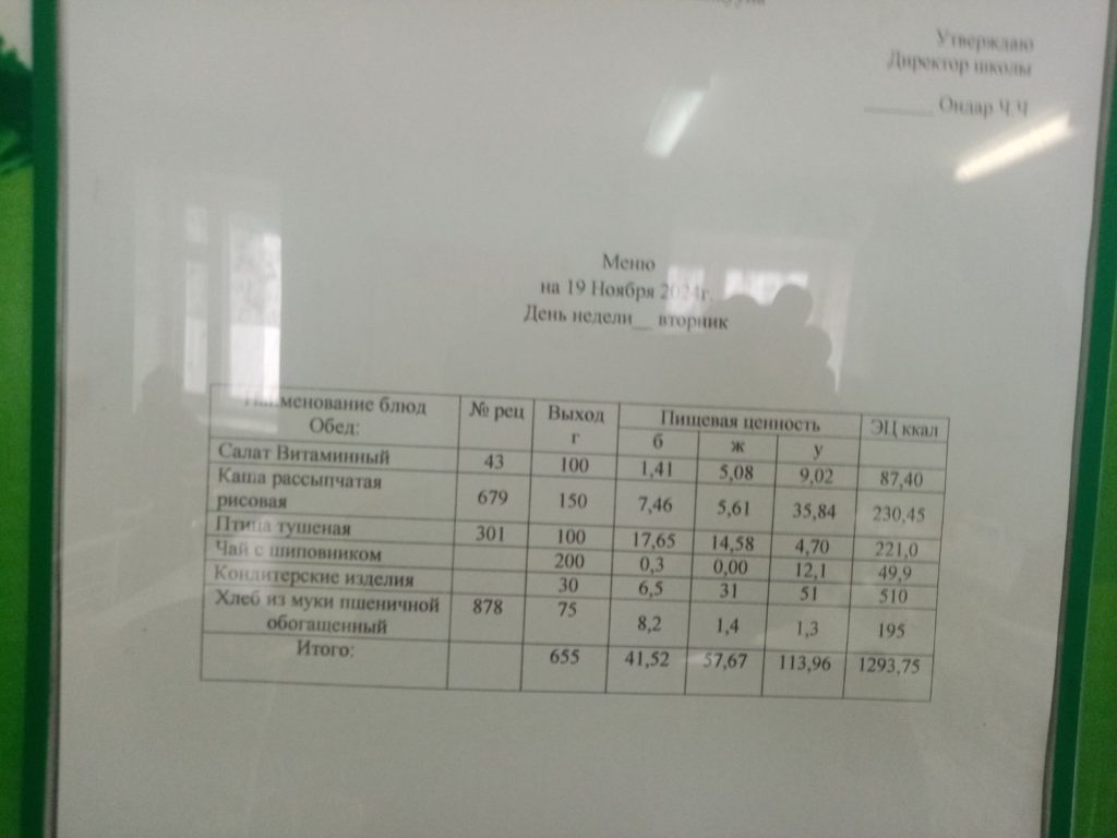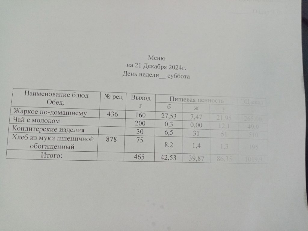 Меню. 2 четверть 2024-2025 у.г.